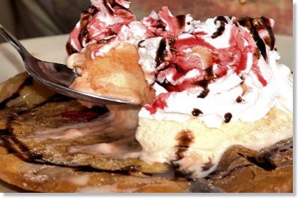See more videos for sopapillas with ice cream. Sopapillas with ice cream. $ 3. 25. purchase this product and earn 3 points. four triangle deep-fried tortillas showed with cinnamon/sugar topped with ice cream, whipped cream, chocolate, caramel and sprinkles. sopapillas with ice cream sopapillas with ice cream quantity. add to cart.